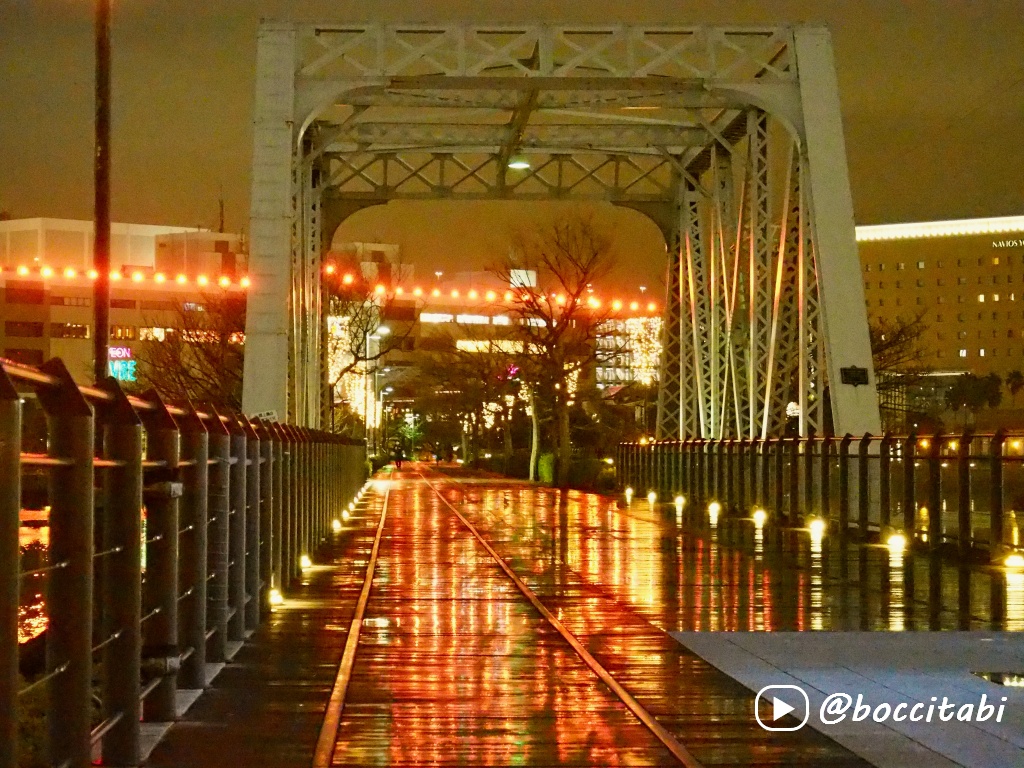 横浜みなとみらい夜景・汽車道・雨の日 写真 フリー画像 無料素材