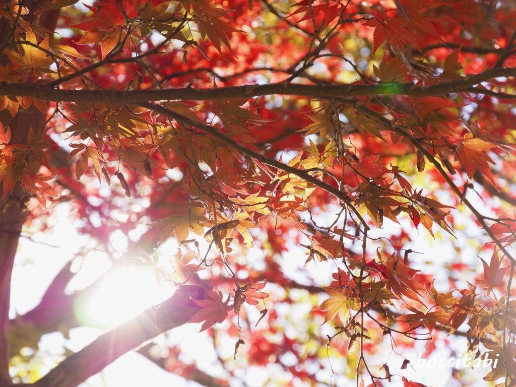 紅葉 モミジ 木漏れ日 写真 フリー画像 無料素材