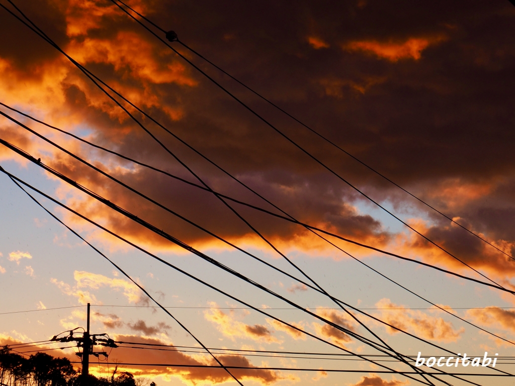 住宅街の夕焼け 電線 写真 フリー画像 無料素材